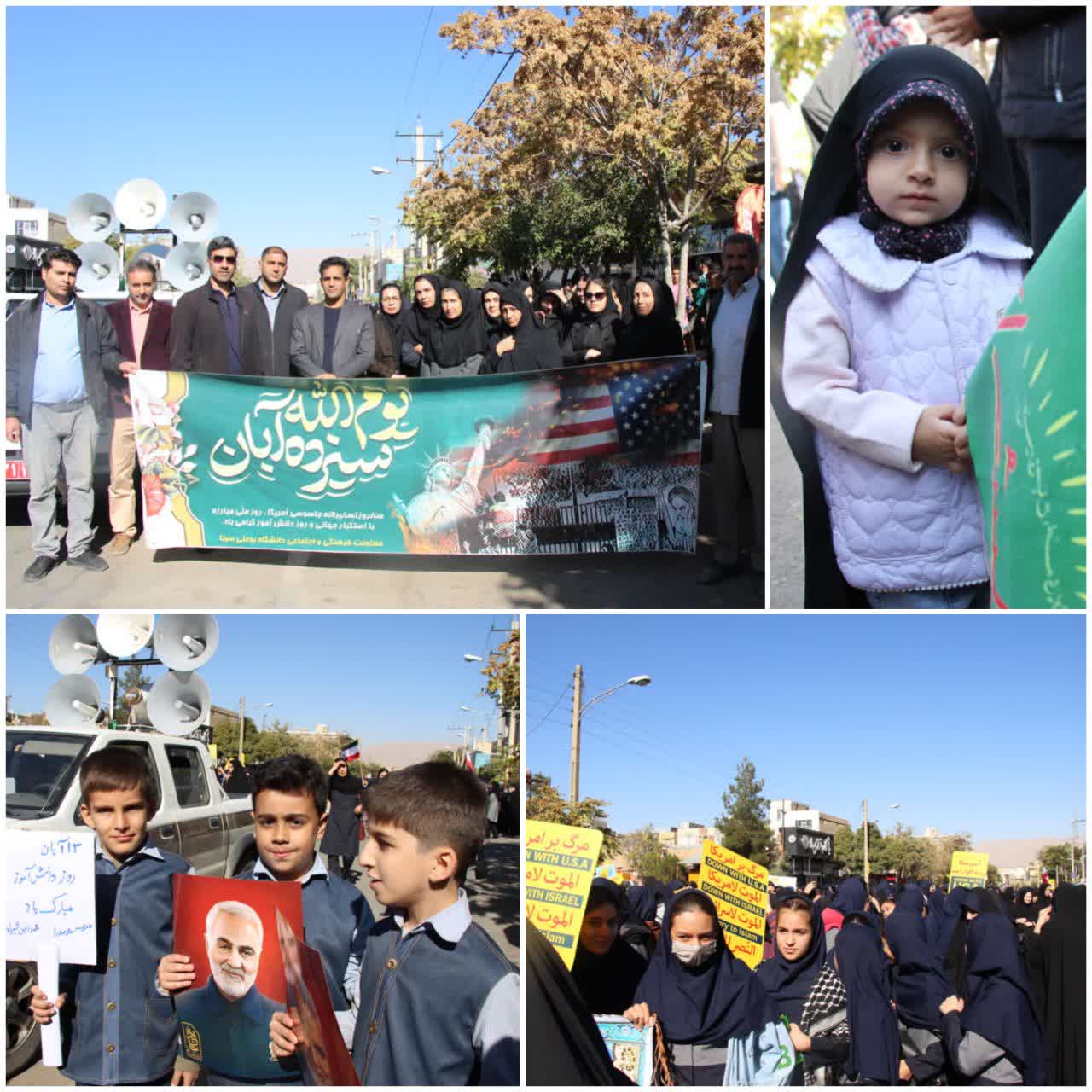 حضور دانشگاهیان مجتمع آموزش عالی نهاوند در راهپیمایی ۱۳ آبان - مجتمع آموزش عالی فاطمیه نهاوند
